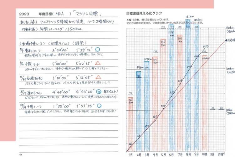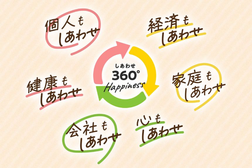 しあわせ360°手帳では、日々のスケジュールに限らず、行動計画や将来「ありたい姿」を書き込めます。単に手帳としてだけではなく、「しあわせ」な生き方を実現するためにご使用いただけます。